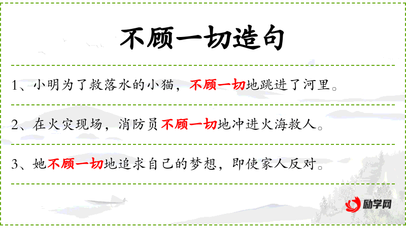 - 不顾一切地:义无反顾、毫不犹豫