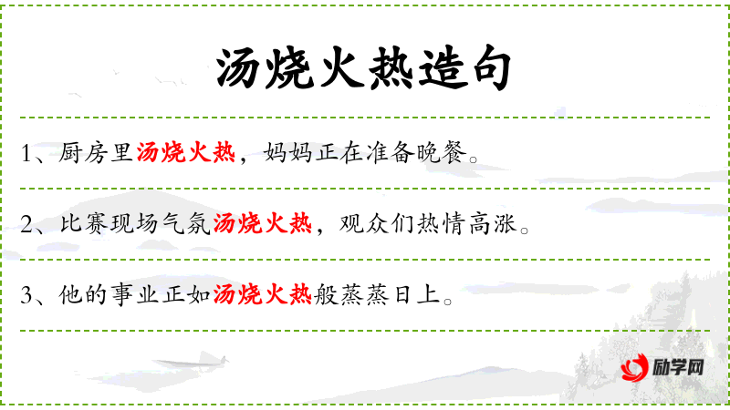 1. 【汤烧火热】 - 指生病发高烧。