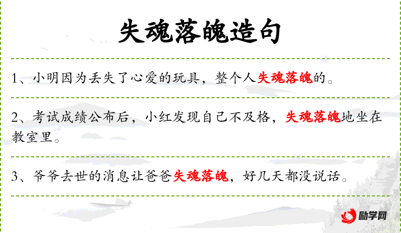 句子在实际交流中用于描述悲伤的情境。使用“失魂落魄”这样的表达方式,强调了情感的强烈程度。