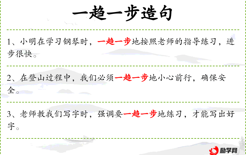 句子:“我们在学*新技能时,要一趋一步地实践,才能真正掌握。”