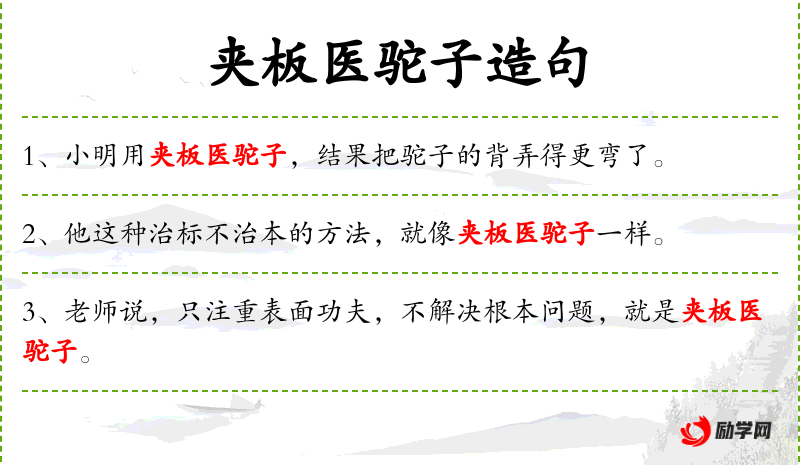 - 夹板医驼子:一个成语,比喻只治标不治本的做法