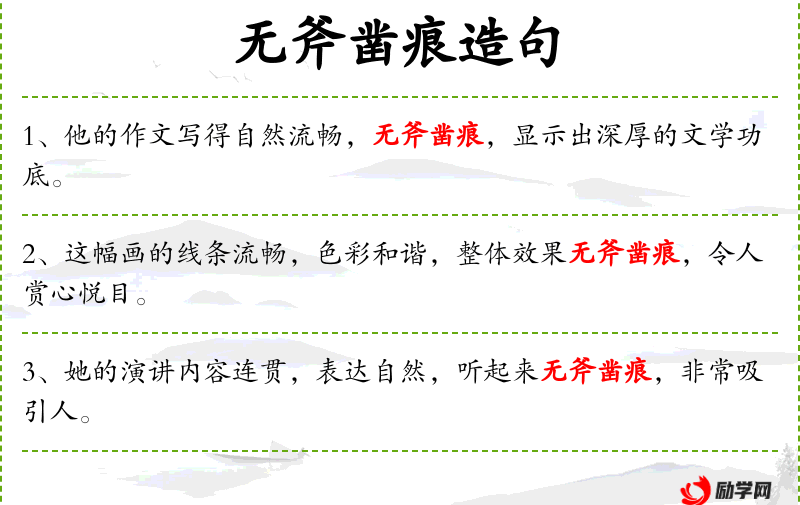 句子:“他的作文写得自然流畅,无斧凿痕,显示出深厚的文学功底。”