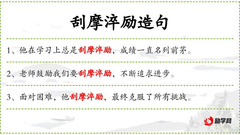 - 谓语:必须刮摩淬励,不懈努力
