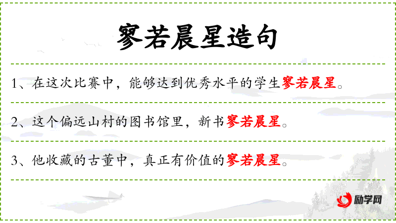 成语:“寥若晨星”源自**古代文学,常用来形容事物稀少。