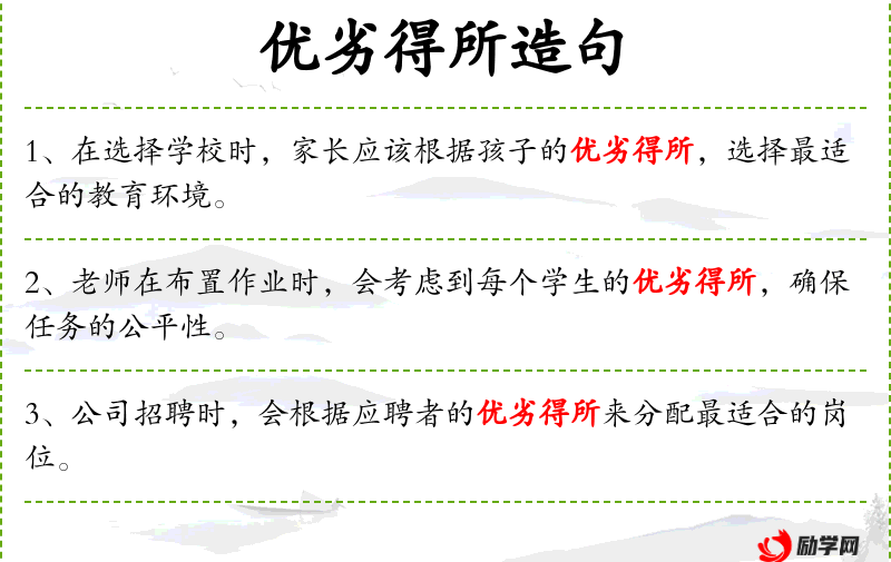 句子:“家长在为孩子选择兴趣班时,应该考虑孩子的优劣得所,避免盲目跟风。”