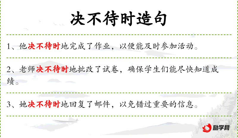 - 决不待时地:立即、马上、迅速