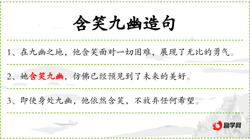 句子:“[含笑九幽的他,证明了即使在最艰难的环境中,也能保持乐观。]”