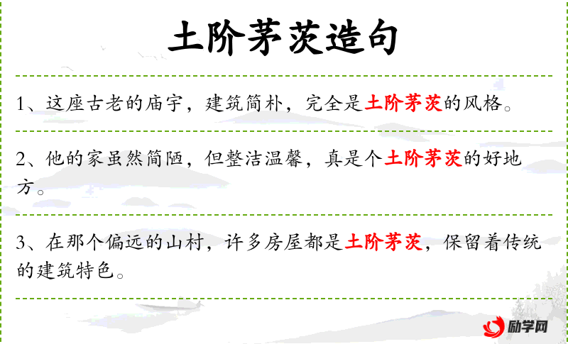 - “土阶茅茨”这个词汇反映了**传统文化中对简朴生活的描述。