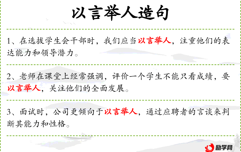 - 成语、典故:“以言举人”可能源自古代选拔人才的方式,体现了文化传统的延续。
