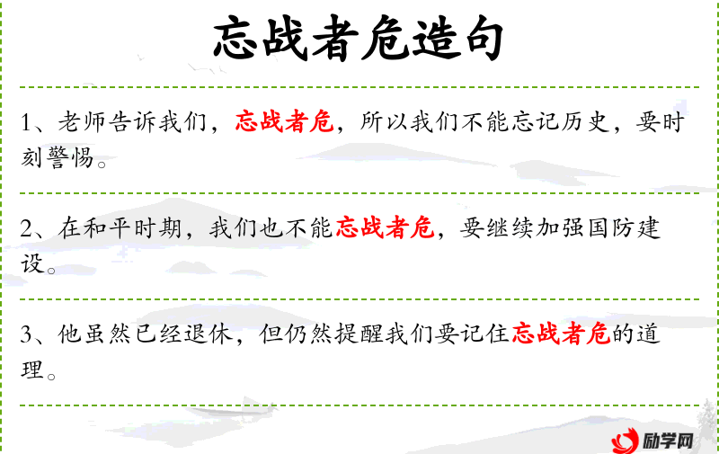 - 忘战者危:一个成语,意思是忘记战争的危险性会导致危险。