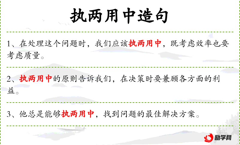 - 执两用中:这是一个成语,意思是采取两种极端之间的中间立场或方法,以达到平衡和共识。