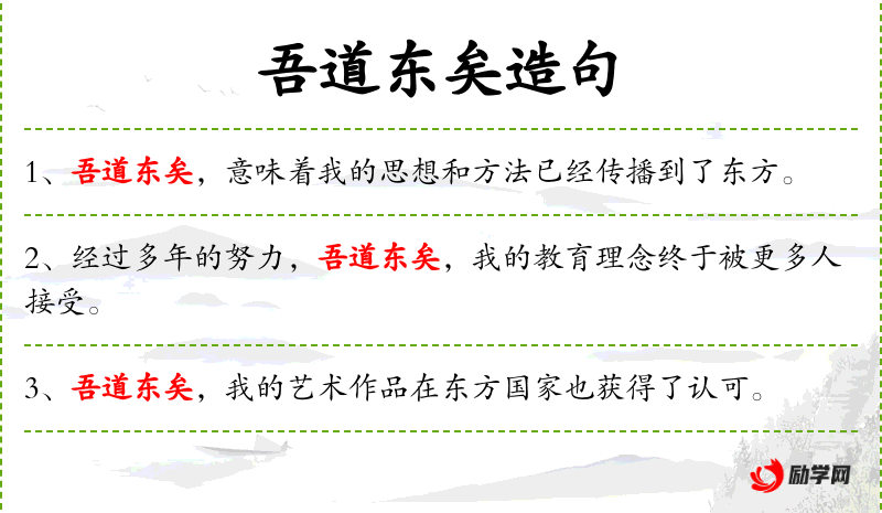 1. 【吾道东矣】 道:主张。自己的学术主张得人继承和推广。