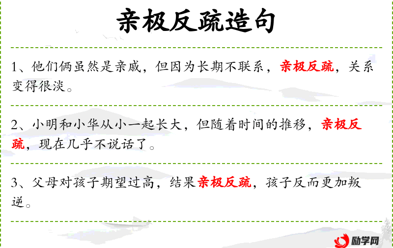 - 使用“亲极反疏”这个成语增加了句子的文化内涵和表达的深度。