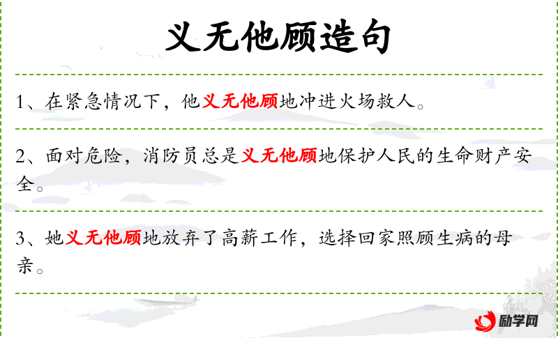 - 义无他顾地:副词短语,表示坚定不移,不顾其他。