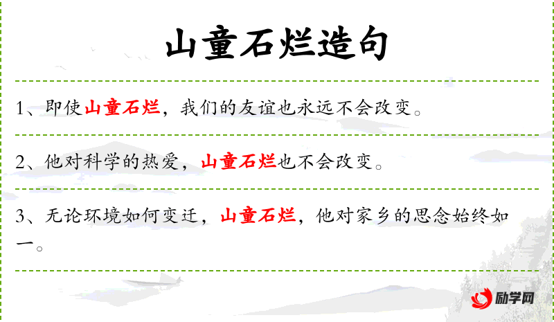 - 状语:“无论环境如何变迁,山童石烂,始终如一”