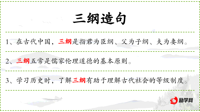 1. 【三纲】 我国封建社会中谓君为臣纲﹑父为子纲﹑夫为妻纲,合称三纲; 佛寺有上座﹑维那﹑典座,皆为主要职务,称三纲。