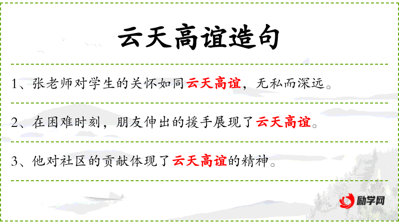 - 云天高谊的期望总是充盈在长辈对晚辈的教育中。