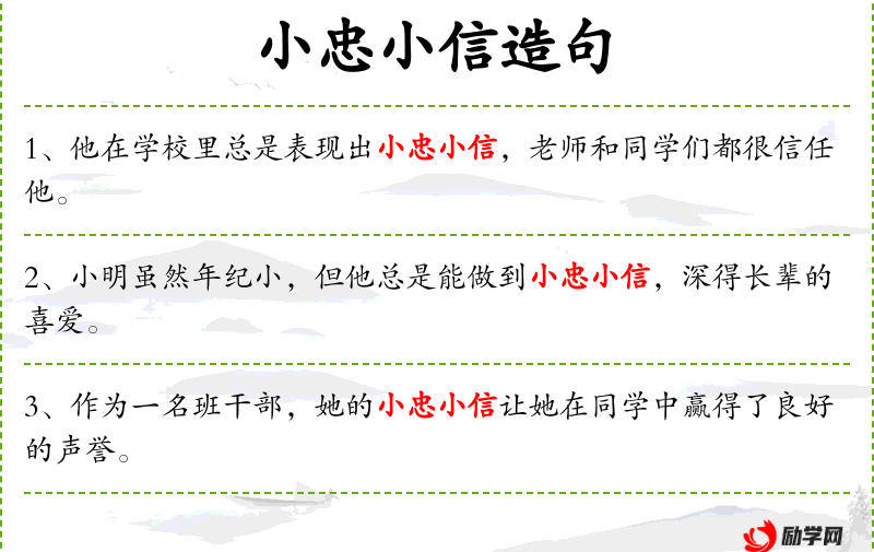 句子:“作为一名班干部,她的小忠小信让她在同学中赢得了良好的声誉。”