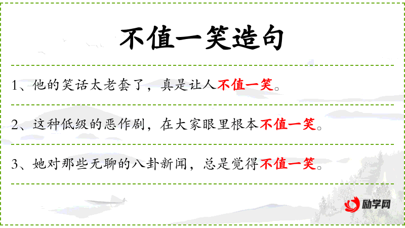 - 不值一笑:不屑一顾、微不足道、无足轻重
