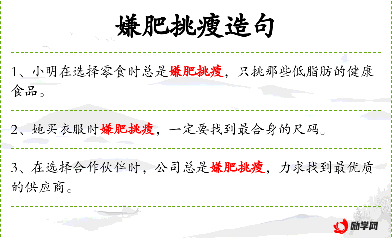 - 嫌肥挑瘦:形容过分挑剔,不愿意接受不完美的选择。