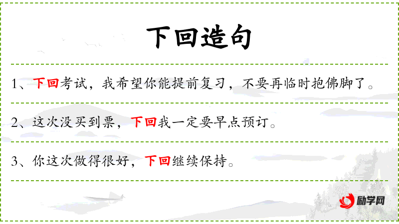 2. 【下回】 - 下次; 指章回小说的下一回目。
