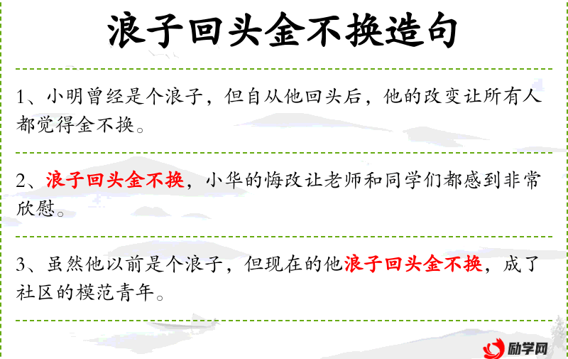 3. 【浪子回头金不换】 指不走正道的人改邪归正后极其可贵。