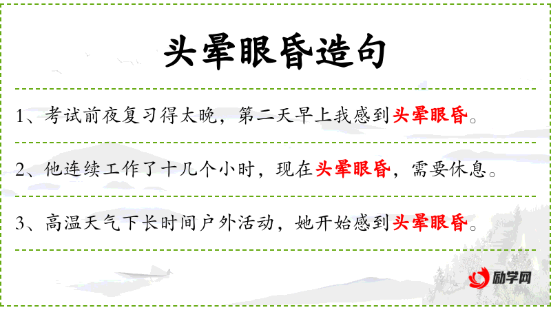 - 头晕眼昏:形容词短语,描述身体不适的状态