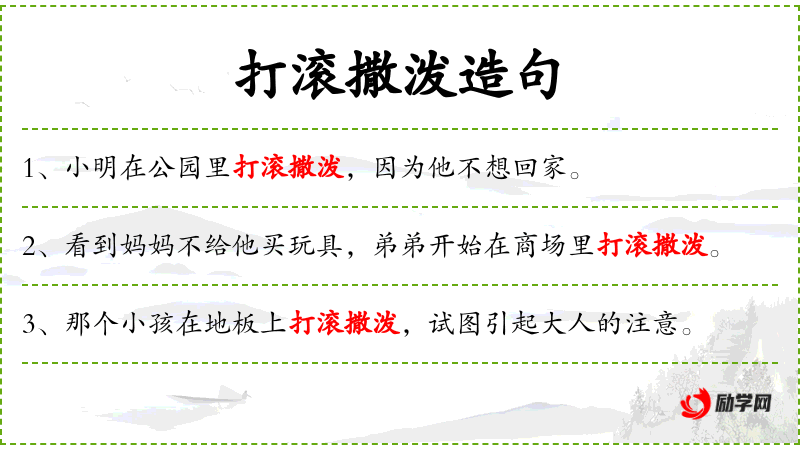 - 相关成语:无直接相关成语,但“撒泼打滚”可以联想到“无理取闹”等表达。