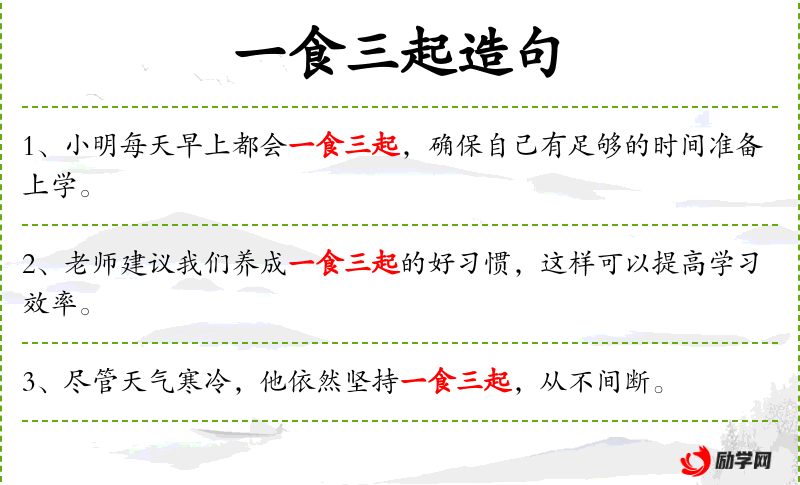 【一食三起】