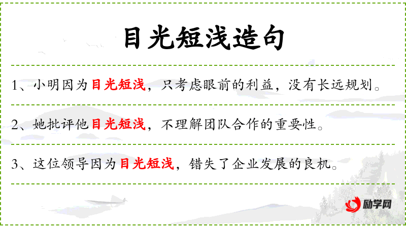3. 【目光短浅】 - 缺乏远见卓识的、只顾眼前利益的性质或状态。