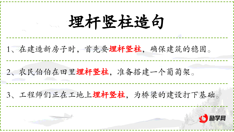 - 宾语:搭建一个葡萄架