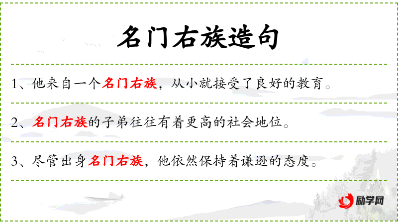 - 不同句式表达:“通常情况下,名门右族的子弟拥有更高的社会地位。”