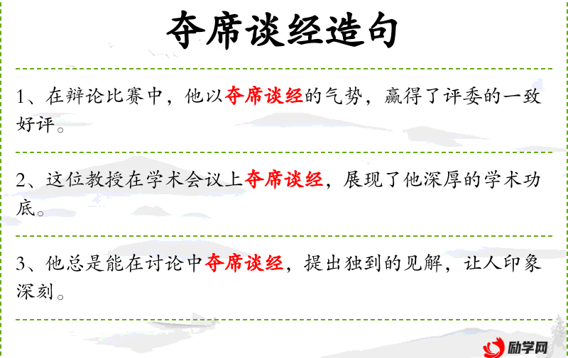 - 夺席谈经:a phrase meaning to take the floor and engage in scholarly debate