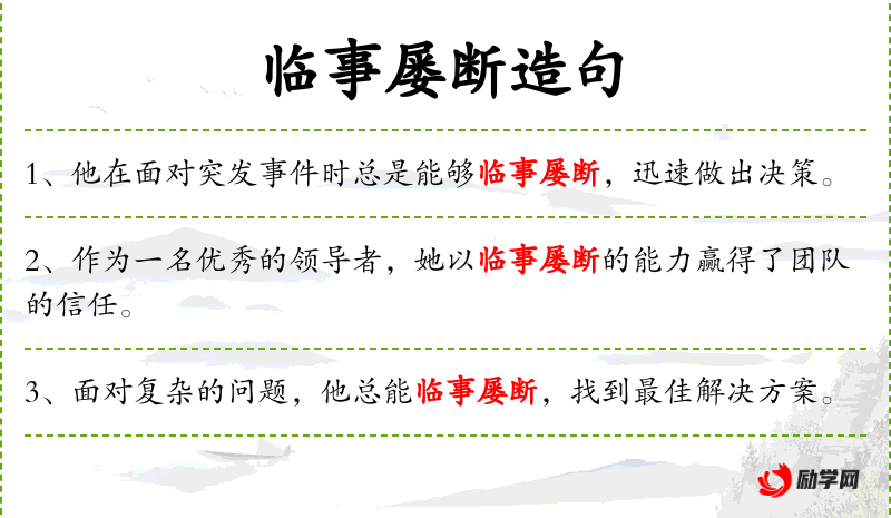 - 临事屡断:面对问题时能够多次做出果断决策。