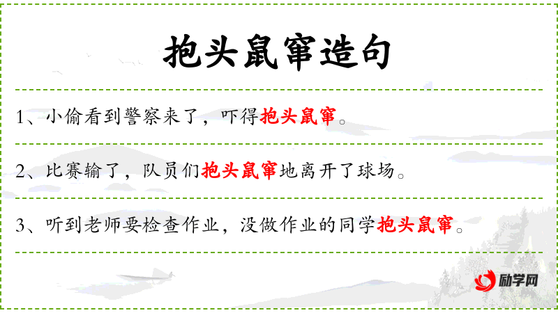 句子:“考试成绩公布后,不及格的学生抱头鼠窜地躲了起来。”