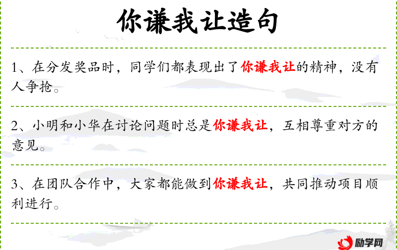 “你谦我让”体现了**传统文化中的谦逊美德,这种行为在团队合作中被视为积极和必要的。