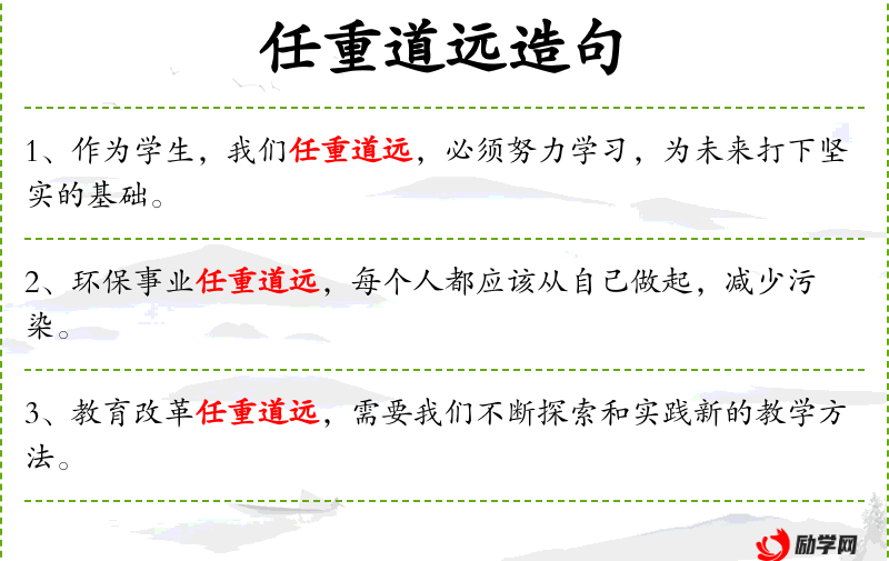 - 任重道远:形容任务艰巨,需要长期努力。