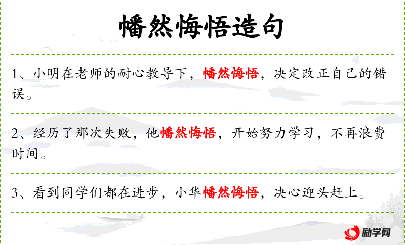 句子:“在老师的悉心指导下,他幡然悔悟,开始认真对待每一门课程。”