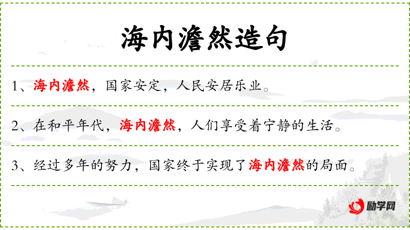 海内:四海之内;澹然:安静从容的样子。形容国家安定,生活秩序正常。