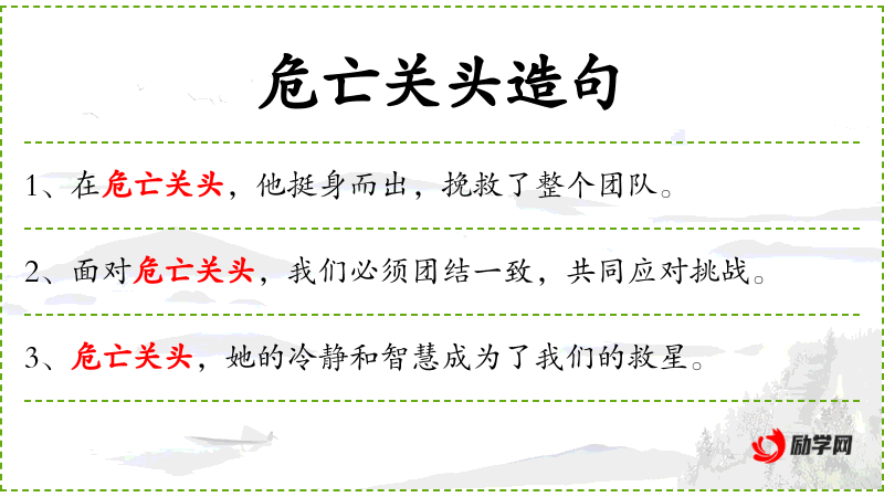 - 状语:“在危亡关头”,限定句子的情境,强调紧迫性和重要性。