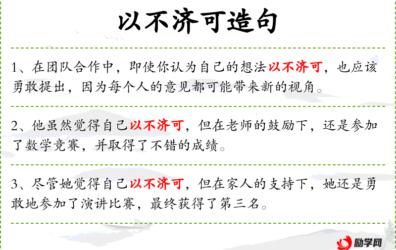 1. 【以不济可】 指用否定错误意见的办法,帮助国君走上成功之路。不,同“否”。济,成。