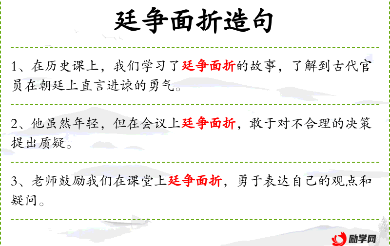 句子:“老师鼓励我们在课堂上廷争面折,勇于表达自己的观点和疑问。”