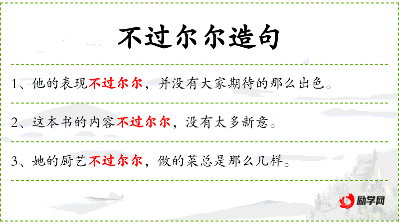 - “不过尔尔”:表示一般,不太出色,相当于“一般般”。