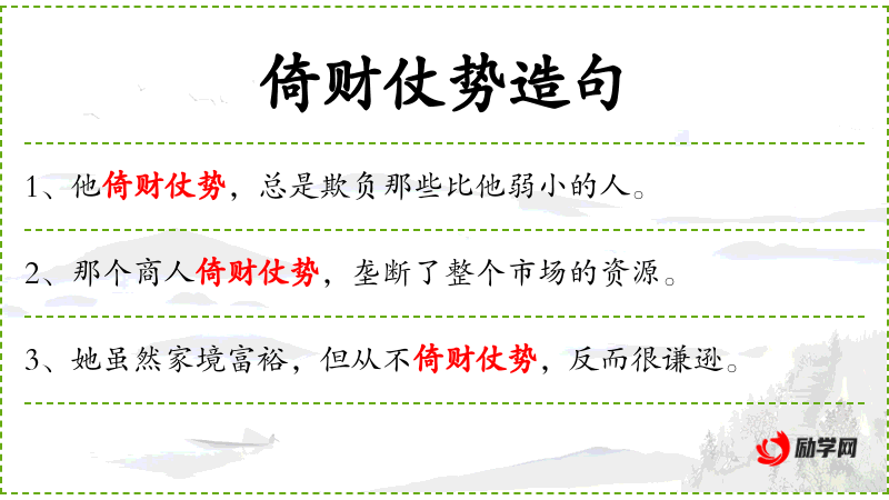 - “倚财仗势”是一个**成语,反映了社会对财富和权势的普遍看法。
