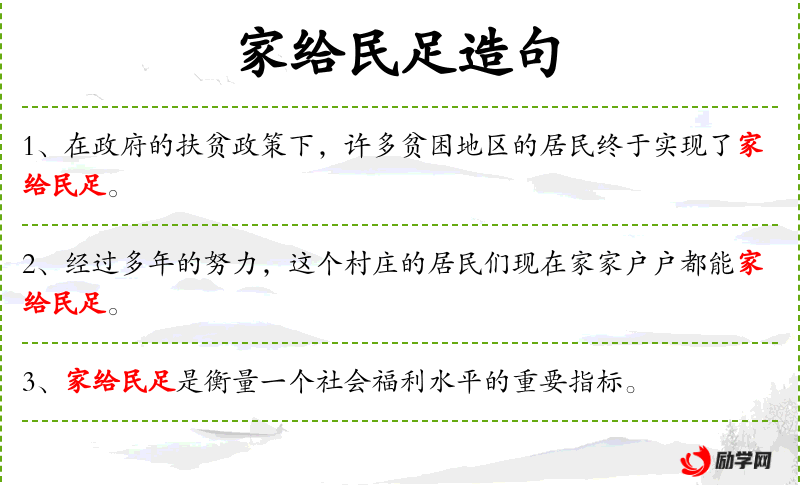 - 在政府的帮助下,许多家庭通过合理规划和资源分配,实现了家给民足。
