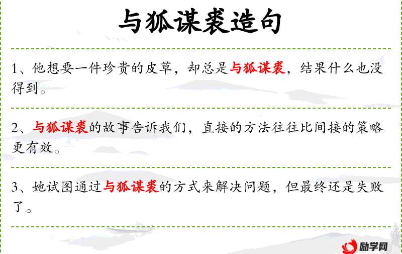- 与狐谋裘:这是一个成语,源自**古代的一个故事,意指与不可能合作的对象商量事情,结果必然失败。