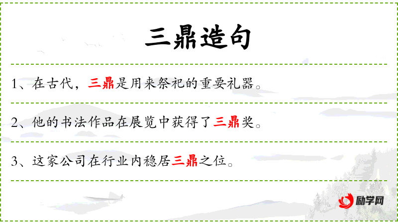 1. 【三鼎】 - 古代祭礼,因等级而异制,士用三鼎,大夫用五鼎; 相传黄帝作三宝鼎。象天﹑地﹑人。见《汉书.郊祀志上》。