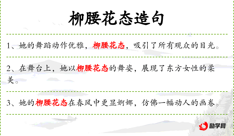 2. 【柳腰花态】 - 形容女子婀娜娇美的体态。