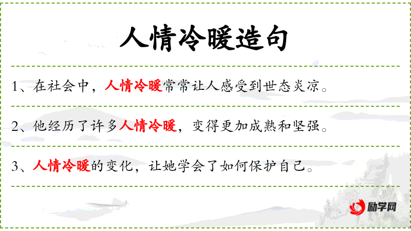 - 人情冷暖:名词短语,指人际关系中的各种复杂情感和态度变化。