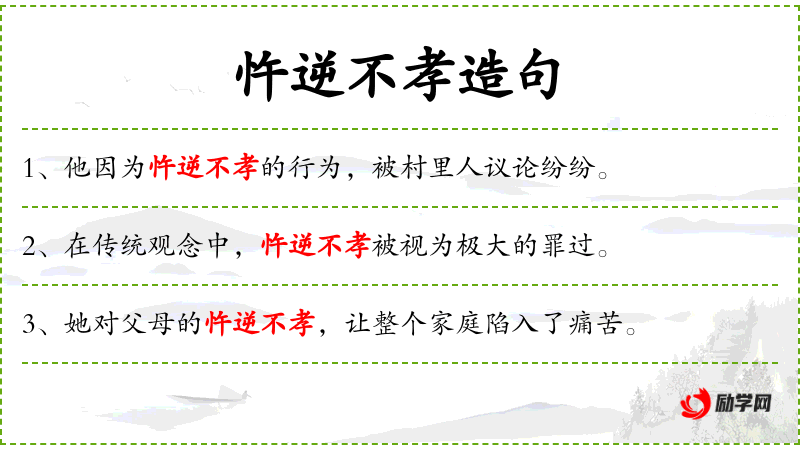 - 忤逆不孝:指违背孝道的行为,通常指子女对父母的不尊敬或不服从。